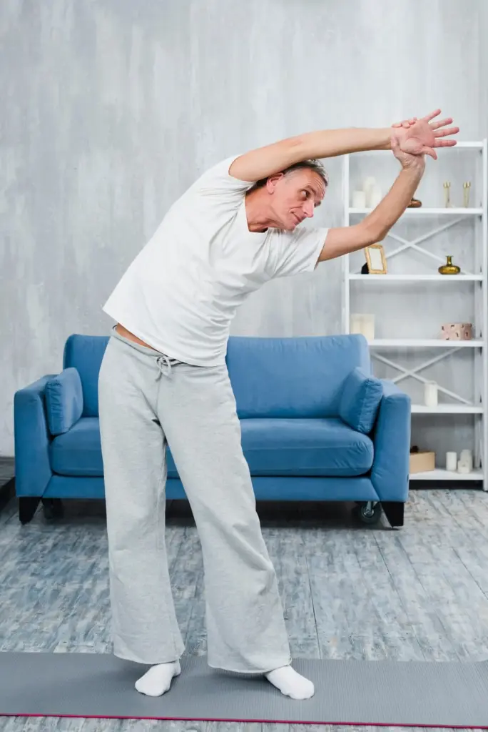 Platziere beide Hände auf der Stuhllehne, trete einen Schritt zurück, beuge leicht die Knie und schiebe das Gesäß nach hinten, als würdest du eine lange Tischplatte erreichen. Lasse Brustbein sinken, verlängere die Flanken, halte Nacken neutral. Ergänze sanfte Rotationen, indem du eine Hand löst und den Arm zur Decke führst. Diese Kombination öffnet den oberen Rücken, befreit die Schultern und erleichtert späteres Tippen und Atmen.